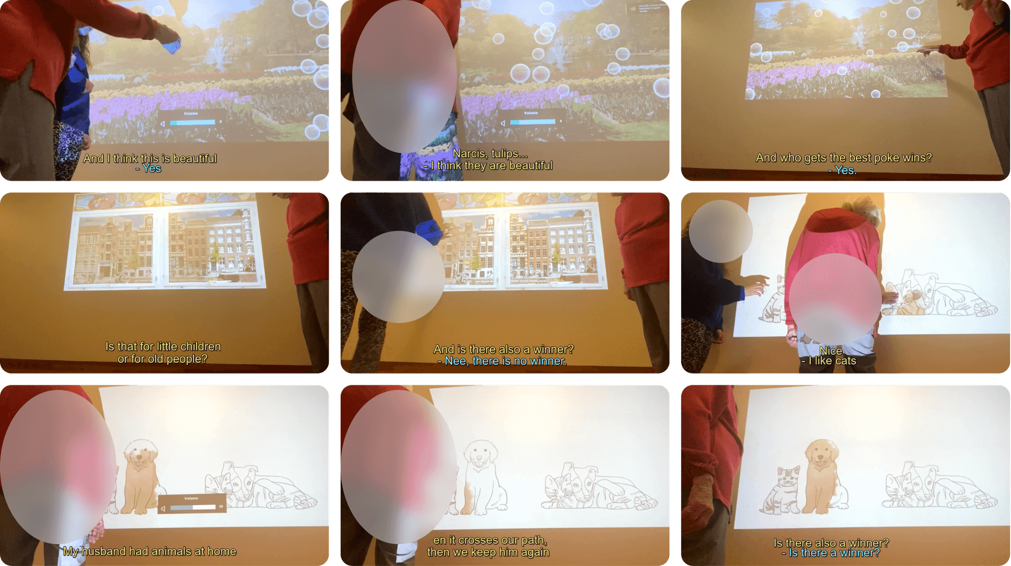 Residents in their middle stage dementia are socially engaged as well as actively moving, including a resident with late dementia. Next to that, caregivers believe that this product would benefit them as residents can independently interact on their own.