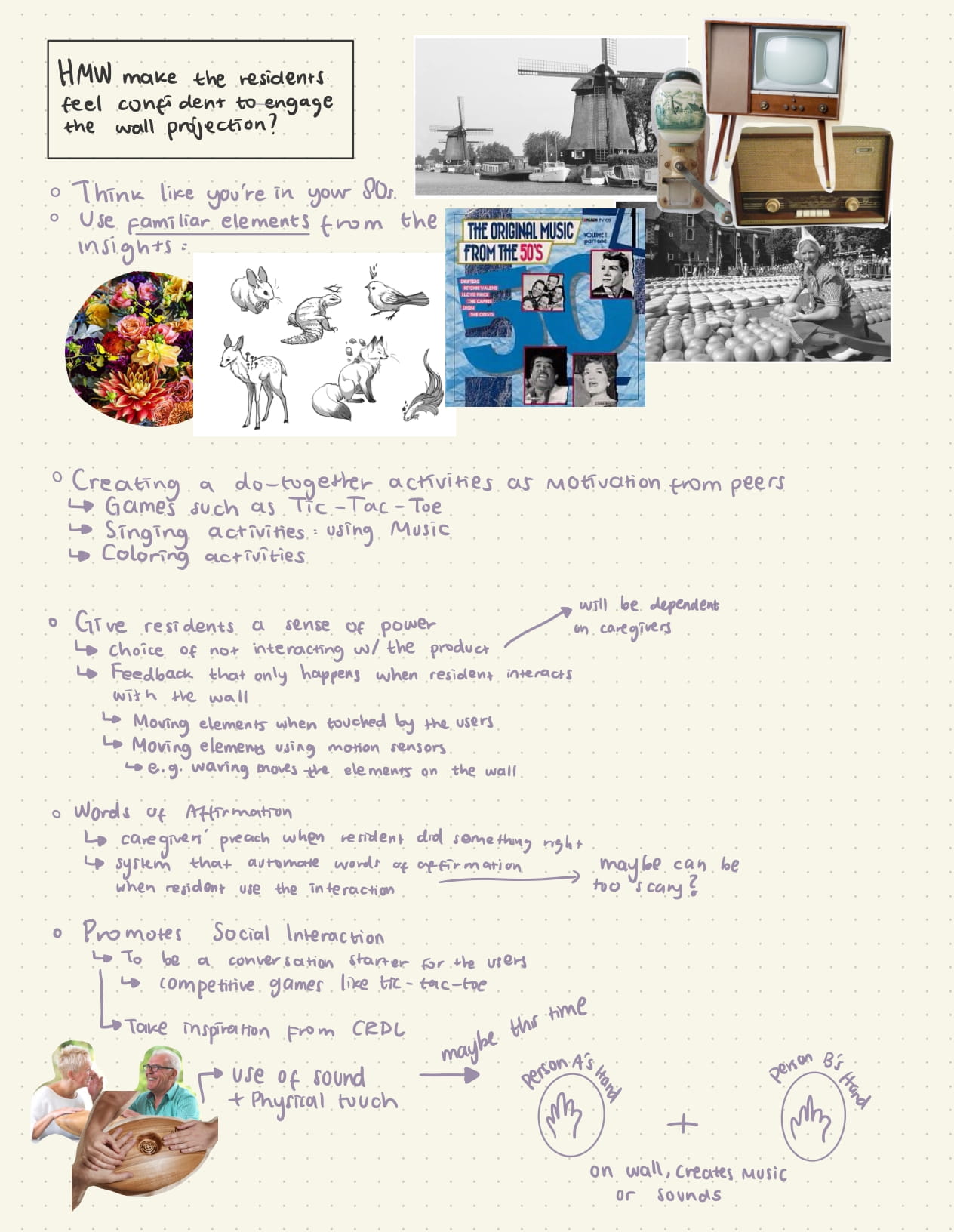 I did an extensive on-field research to validate the findings that I found online and see how it specifically can benefit the residents. This research includes workshops, observations, and focus groups involving residents, caregivers, wellness departments,