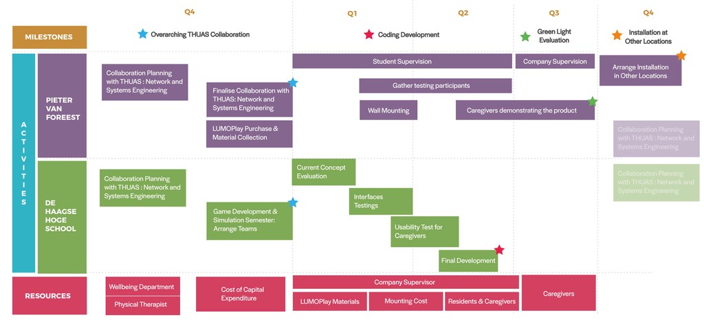 I executed a Roadmapping for further collaboration between Pieter van Foreest and The Hague University of Applied Sciences as it still needs further development. This is due to the fact that the prototype still needs to be mounted to the wall to be used effectively. That way, caregivers would be able to instantly use the product without setting up multiple objects (sensor, projection & stand)