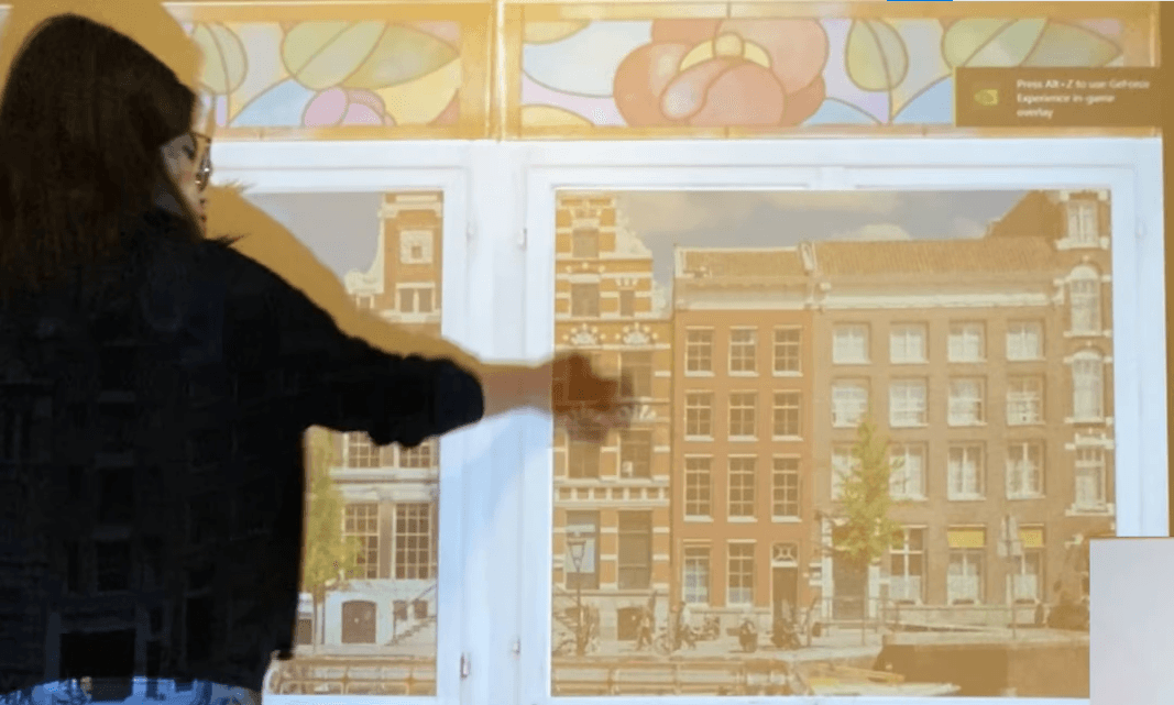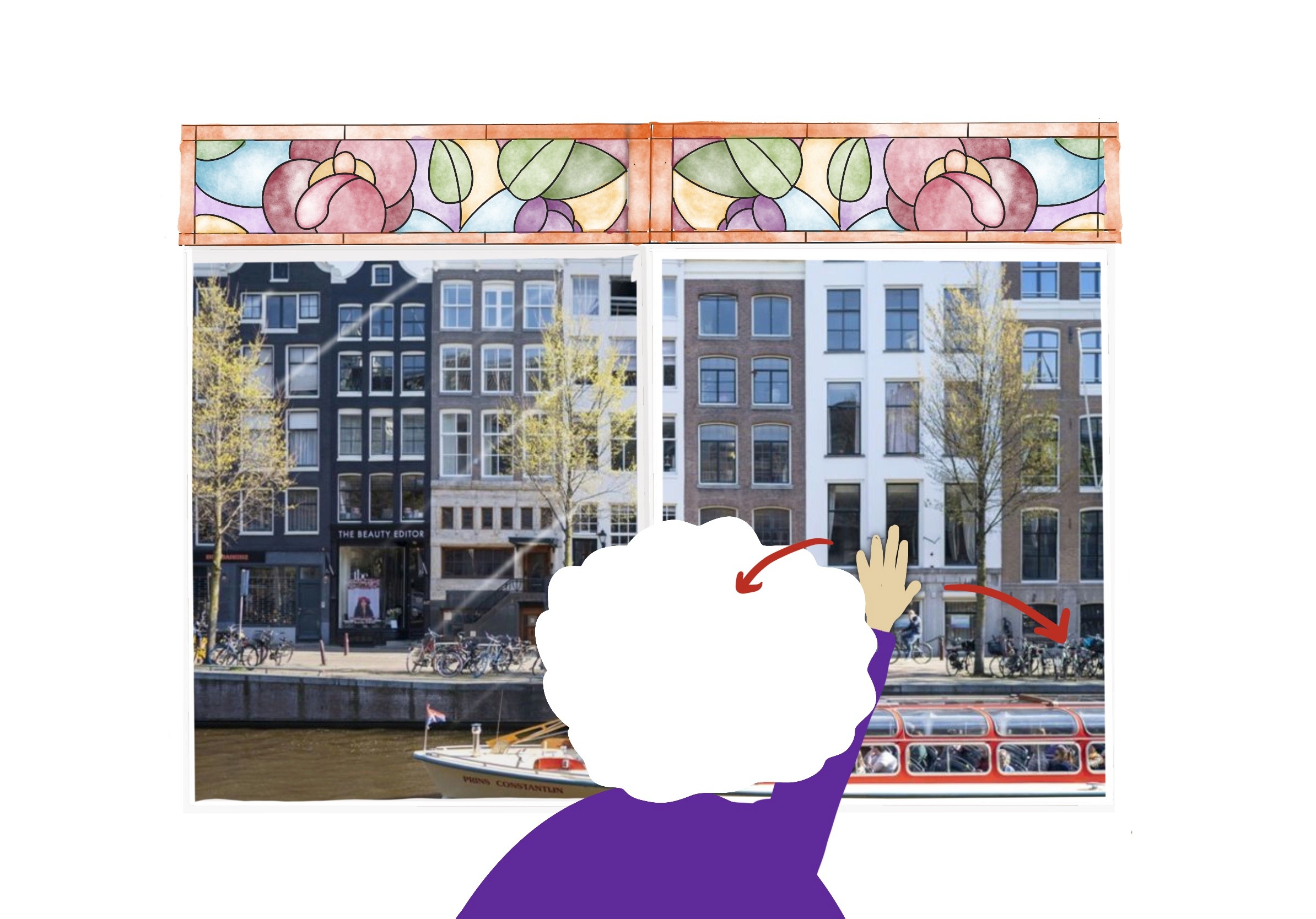 This interface invites users to clean a dirty window, revealing a view of classic dutch houses by the canal.They can enjoy the sounds of bike bells and bustling city, creating a nostalgic and immersive experience that connects them to familiar surroundings.