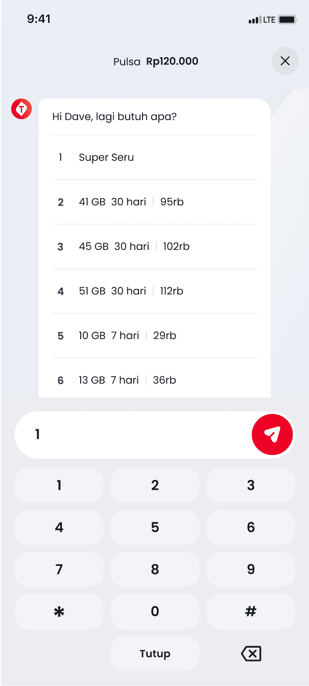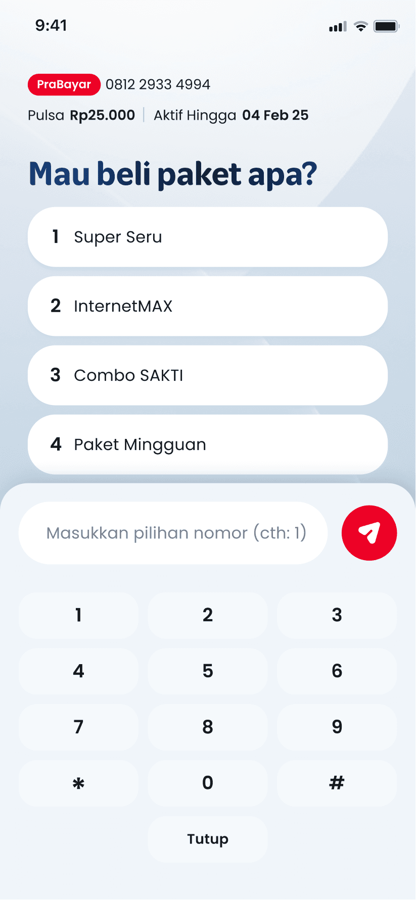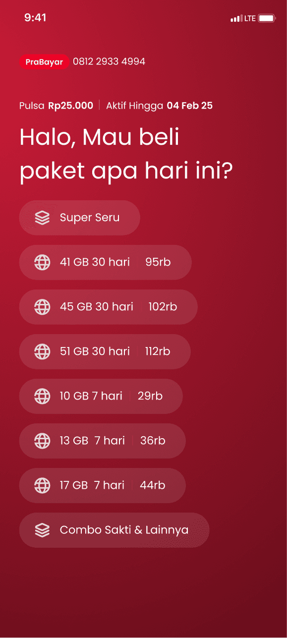 Essential Telco Needs in 1 Screen, which acts as a transit to the main MyTelkomsel App