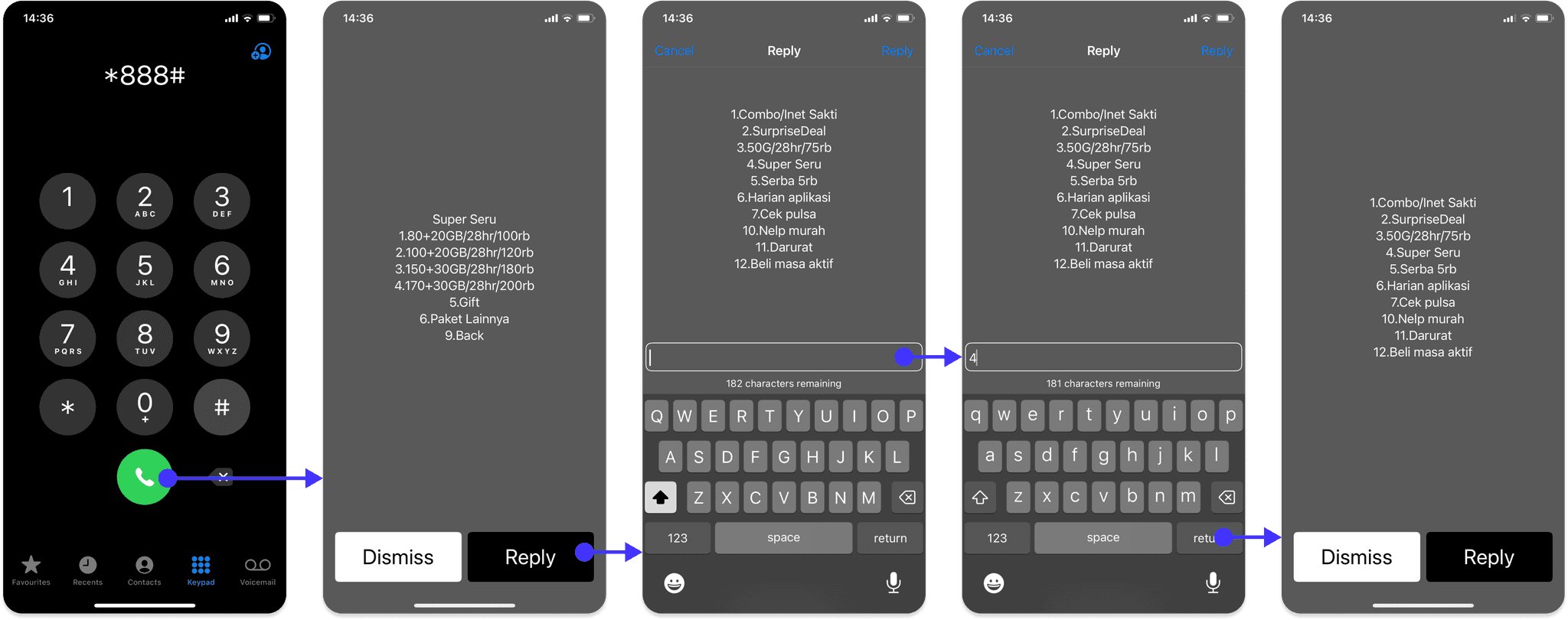 Due to the timeline frame, the approach that we took was a rapid prototyping for usability testing. We tested several concepts below to *888# users, including those who lapsed from the main MyTelkomsel apps.