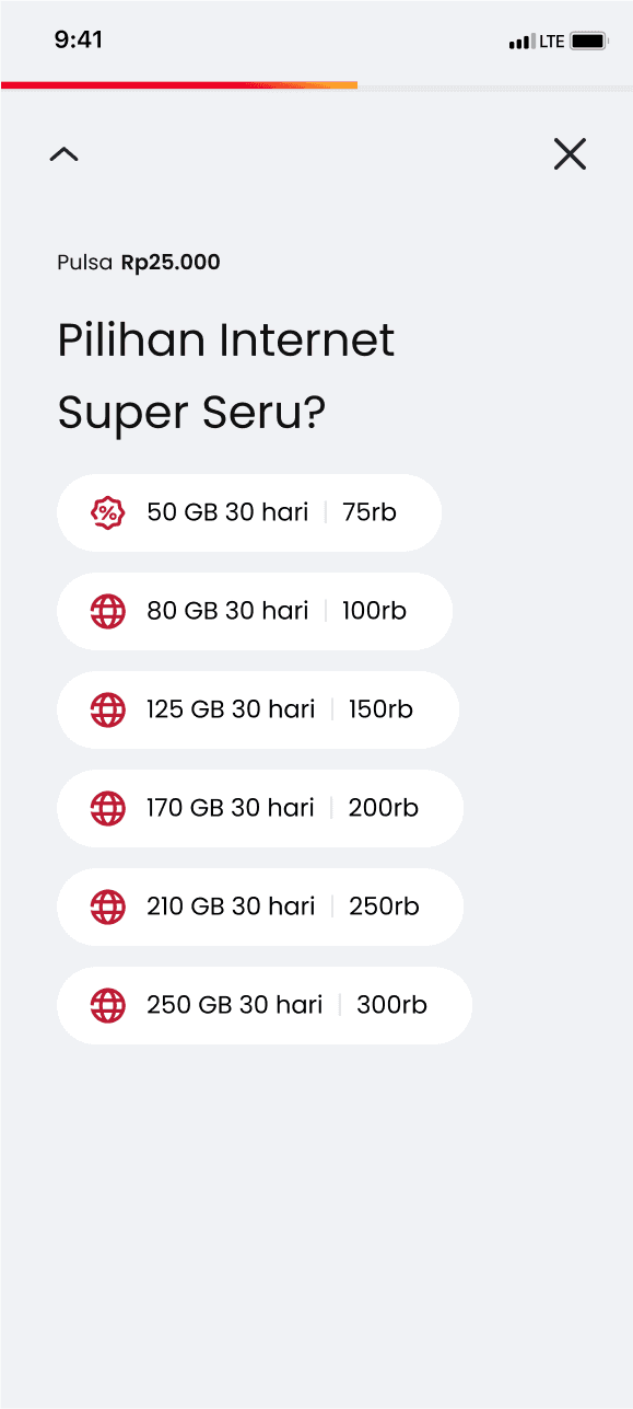 This feature allows users to buy internet packages efficiently, just like they do with *888# or in stores. This was highly crucial because the target groups are very familiar with *888# method. With just three clicks, users can complete their purchase without any hassle.